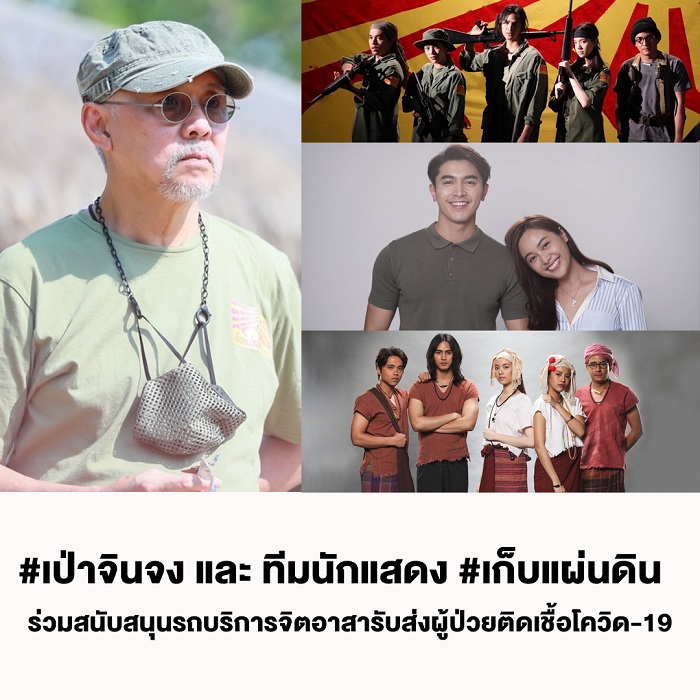 “เป่าจินจง” และ ทีมนักแสดง “เก็บแผ่นดิน” ร่วมสนับสนุนรถบริการจิตอาสารับส่งผู้ป่วยติดเชื้อโควิด-19 ไปโรงพยาบาล ที่คนไข้ยืนยันมีเตียงแล้ว ยังพอดูแลตัวเองได้ แต่เดือดร้อนเรื่องพาหนะ ในเขตกรุงเทพและปริมณฑล ภายในวันที่ 1-15 พฤษภาคมนี้ (วันละ 5 คน) โทรติดต่อได้ที่ คุณแว่น 085 – 826- 3832 หรือ 092- 351- 1138