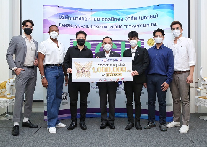 นายธนิท รุจนันท์ธนา (ที่ 3 จากซ้าย) รองกรรมการผู้จัดการสายงานการตลาด บริษัท เจเคเอ็น โกลบอล มีเดีย จำกัด (มหาชน) หรือ JKN ผู้แทนคุณแอน จักรพงษ์ จักราจุฑาธิบดิ์ ร่วมด้วยพิธีกรและนักแสดงจากช่อง JKN18 นำโดย นายศัลย์ อิทธิสุขนันท์ (ที่ 7 จากซ้าย), นายรัศมีแข ฟ้าเกื้อล้น (ที่ 2 จากซ้าย), นายณพล พรมสุวรรณ (ที่ 6 จากซ้าย), นายเคิร์ก บอนแดด (ที่ 1 จากซ้าย) เข้ามอบอาหารให้กับบุคลากรทางการแพทย์ และผู้ป่วยโควิด-19 ของโรงพยาบาลเกษมราษฎร์ โดยได้รับเกียรติจาก ศ.ดร.นพ.เฉลิม หาญพาณิชย์ (ที่ 4 จากซ้าย) ประธานเจ้าหน้าที่บริหาร และ นายกันตพร หาญพาณิชย์ (ที่ 5 จากซ้าย) ประธานเจ้าหน้าที่บริหารฝ่ายการตลาด บริษัท บางกอก เชน ฮอสปิทอล จำกัด (มหาชน) รับมอบ ณ โรงพยาบาลเกษมราษฎร์ ประชาชื่น