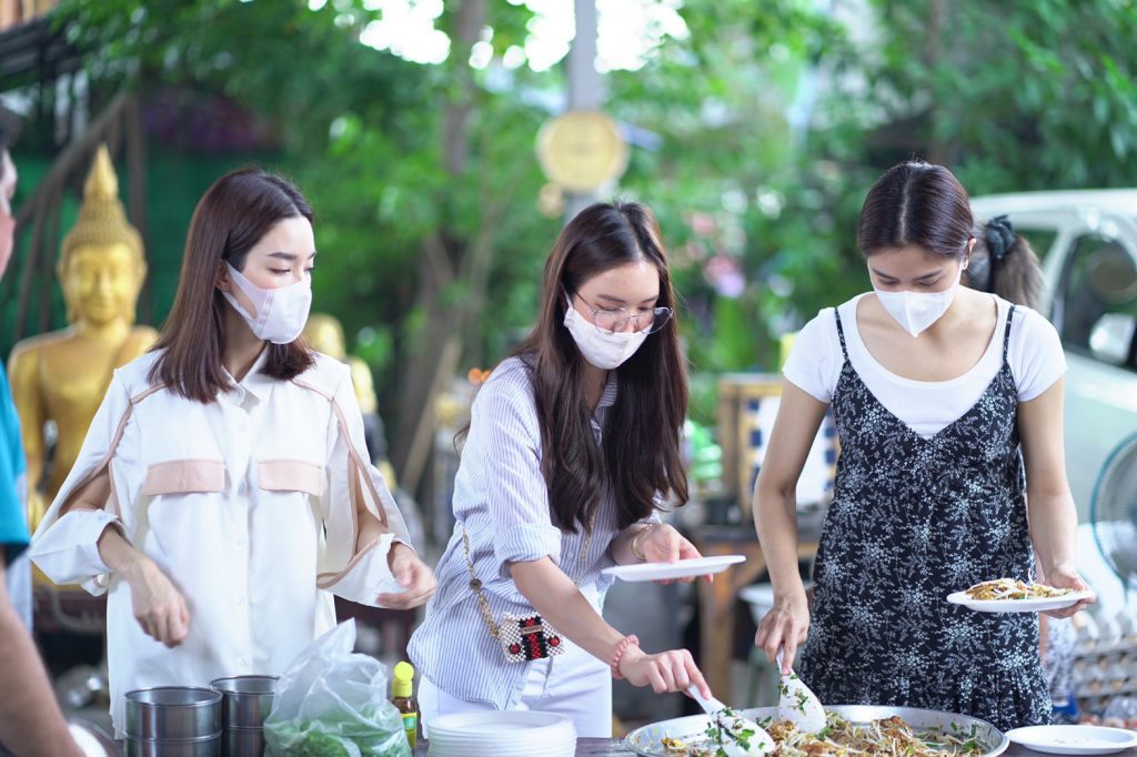 โดยบัวได้เผยความรู้สึกว่า … “วันนี้ บัว, โม, พรีม และพี่แพร์ เอาหอยทอดมาเลี้ยง 4 กระทะใหญ่ค่ะ ผัดแจกจ่ายให้กับพี่ๆ น้องๆ ที่พักอาศัยอยู่ในละแวกใกล้เคียงวัด ได้มารับกลับบ้านไปทาน ส่วนใหญ่แต่ละครอบครัวก็จะส่งตัวแทน นำปิ่นโตมาใส่ ได้เห็นทุกคนมีรอยยิ้ม พวกเราก็ดีใจ อยากให้ทุกๆ คนมีกำลังใจที่จะสู้กันต่อไป แล้วเราจะผ่านมันไปด้วยกัน”