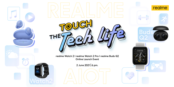 realme แบรนด์สมาร์ทโฟนเพื่อคนรุ่นใหม่ที่เติบโตเร็วที่สุดในโลก ชวนคุณร่วมเปิดประสบการณ์สุดล้ำกับผลิตภัณฑ์ AIoT รุ่นใหม่ล่าสุดจาก realme ในงาน Touch The Tech Life งานเปิดตัวสมาร์ทวอทช์ ที่ตอบโจทย์สำหรับคนรุ่นใหม่ในยุคปัจจุบัน ซึ่งมาพร้อมกับดีไซน์สุดหรู นับเป็นหนึ่งในสมาร์ทวอทช์ที่ดีที่สุดและคุ้มค่าที่สุดสำหรับ Android กับ realme Watch 2 และ realme Watch 2 Pro สมาร์ทวอทช์อัจฉริยะได้รับมาตรฐานด้านคุณภาพชั้นเยี่ยมพร้อมฟังก์ชั่นหลากหลาย ที่จะพาคุณไปสู่โลกที่เหนือระดับ นอกจากนี้ ยังมาพร้อมกับ realme Buds Q2 หูฟังไร้สายซึ่งได้รับแรงบันดาลใจยอดเยี่ยมและอัดแน่นไปด้วยระบบควบคุมอัจฉริยะ