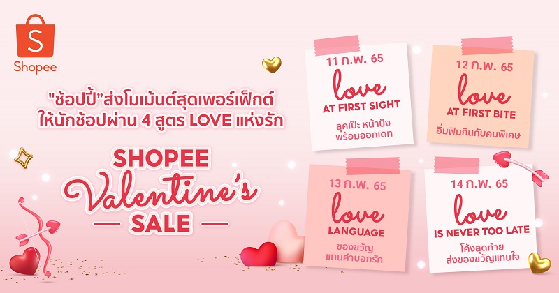 ก้าวเข้าสู่เดือนกุมภาพันธ์อย่างสมบูรณ์แบบ เรียกได้ว่าอีกไม่กี่วันก็จะถึงวันแห่งความรัก หรือ วันวาเลนไทน์ ที่หนุ่มสาวหลายๆ คนต่างตั้งตารอ แต่ใครว่าวันวาเลนไทน์ต้องเป็นโมเม้นต์สุดหวานที่สงวนสิทธิ์ของคู่รักเท่านั้น เพราะไม่ว่าความสัมพันธ์ของคุณจะเป็นในรูปแบบไหน อาทิ ครอบครัว คู่รัก พี่น้อง เพื่อนซี้ แค่มีความรักให้กัน เราก็สามารถใช้โอกาสนี้เต็มเต็มช่วงเวลาแห่งรักดีๆ นี้ได้ แน่นอนว่าในช่วงพิเศษแบบนี้หลายๆ คน หลายๆ คู่คงจะเตรียมมองหาของขวัญสุดพิเศษ หรือมองหาร้านอาหารดีๆ พร้อมทั้งแต่งสวยหล่อเพื่อต้อนรับเทศกาลแห่งความรักนี้กันสุดฤทธิ์พร้อมไปฉลองช่วงเวลาดีๆ ด้วยกัน แต่ก็ยังมีอีกหลายๆ คนที่วาเลนไทน์ปีนี้อาจจะไม่ได้อยู่กับคนที่รัก อาจจะด้วยหลายๆ ปัจจัยไม่ว่าจะเป็น ที่อยู่อาศัย การงาน รวมไปถึงสถานการณ์โรคระบาดที่เกิดขึ้น แต่ก็ไม่ต้องหวั่นอีกต่อไป เพราะวาเลนไทน์ปีนี้ ช้อปปี้ ผู้นำแพลตฟอร์มอีคอมเมิร์ซในภูมิภาคเอเชียตะวันออกเฉียงใต้และไต้หวัน ขอเป็นคิวปิดส่งความสุขให้นักช้อปผ่าน 4 สูตรแห่งรักฉบับนิวนอร์มัลให้นักช้อปทุกคนในแคมเปญสุดพิเศษ “Shopee Valentine’s Sale” ช้อปโปรเด็ดมัดใจเธอ พร้อมชวนช้อปปิ้งของขวัญสุดพิเศษให้กับตัวเองและคนที่คุณรักที่มาพร้อมโปรโมชั่นเด็ด ดีลดีในธีมวันแห่งความรัก ยกระดับความพิเศษด้วยกิจกรรมความบันเทิงจากฟีเจอร์ยอดฮิต อย่าง Shopee Live และ Shopee Prizes ตั้งแต่วันที่ 11-14 กุมภาพันธ์ 2565