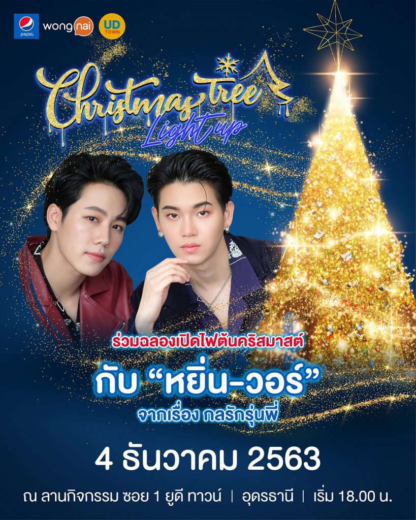 จัดเต็มสำหรับเทศกาลเฉลิมฉลอง ยิ่งใหญ่อลังกาลทุกปี ศูนย์การค้า ยูดีทาวน์ อุดรธานี ล็อคคิวคู่จิ้นมาแรงแห่งปี หยิ่น- วอร์ จากชีรีย์ดัง กลรักรุ่นพี่ ร่วมงานเปิดไฟต้นคริสมาส ในตรีม “Light up the lights Bright up your life” เติมความพิเศษสุดๆ ด้วยงาน เป๊ปซี่ พรีเซ้นท์ วงในฟู้ดเฟสติวัล แอด ยูดีทาวน์ ดีเดย์เปิดพื้นที่กระจายความสุ