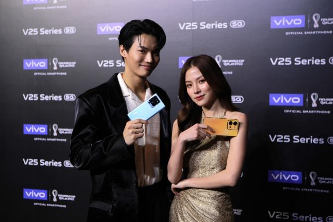 vivo V25 Series 5G สมาร์ตโฟนรุ่นใหม่ล่าสุดจาก vivo V Series โดดเด่นด้วยฟีเจอร์กล้องถ่ายภาพความละเอียดสูง 64MP พร้อมฟีเจอร์ OIS Ultra-Sensing จาก V25 Pro ช่วยให้ทุกภาพไม่สั่นไหวในทุกสถานการณ์ รวมถึงกล้องหน้าความละเอียดสูง 50MP จาก V25 ที่จะทำให้คุณถ่ายภาพเซลฟีไม่หลุดโฟกัสด้วยฟีเจอร์ Eye Autofocus คมชัดสะกดทุกสายตา พร้อมรองรับโหมดถ่ายภาพกลางคืน Super Night Portrait ที่จะทำให้ภาพถ่ายยามค่ำคืนโดดเด่นกว่าที่เคย เตรียมวางจำหน่ายอย่างเป็นทางการแล้วทั้งรุ่น vivo V25 กับสองสีใหม่ Diamond Black และ Sunrise Gold ที่ราคา 13,999 บาท (รุ่น 8G + 12 GB) และราคา 14,999 บาท (รุ่น 8GB + 256 GB) รวมทั้ง vivo V25 Pro กับสี Starlight Black และ Surfing Blue ที่ราคา 19,999 บาท  โดยความพิเศษของทั้งสองรุ่นคือ มาพร้อมกับฝาหลังแบบกระจกที่มีเทคโนโลยี Color-changing Glass ที่สามารถเปลี่ยนสีได้[1] โดยสีของฝาหลังจะทำปฏิกิริยากับแสงแดดและแหล่งกำเนิดรังสี UV อื่นๆ แล้วจึงเปลี่ยนเป็นสีต่างๆ ทำให้กลายอันเป็นเอกลักษณ์ ดูโดดเด่นและมีสไตล์ที่ไม่เหมือนใคร