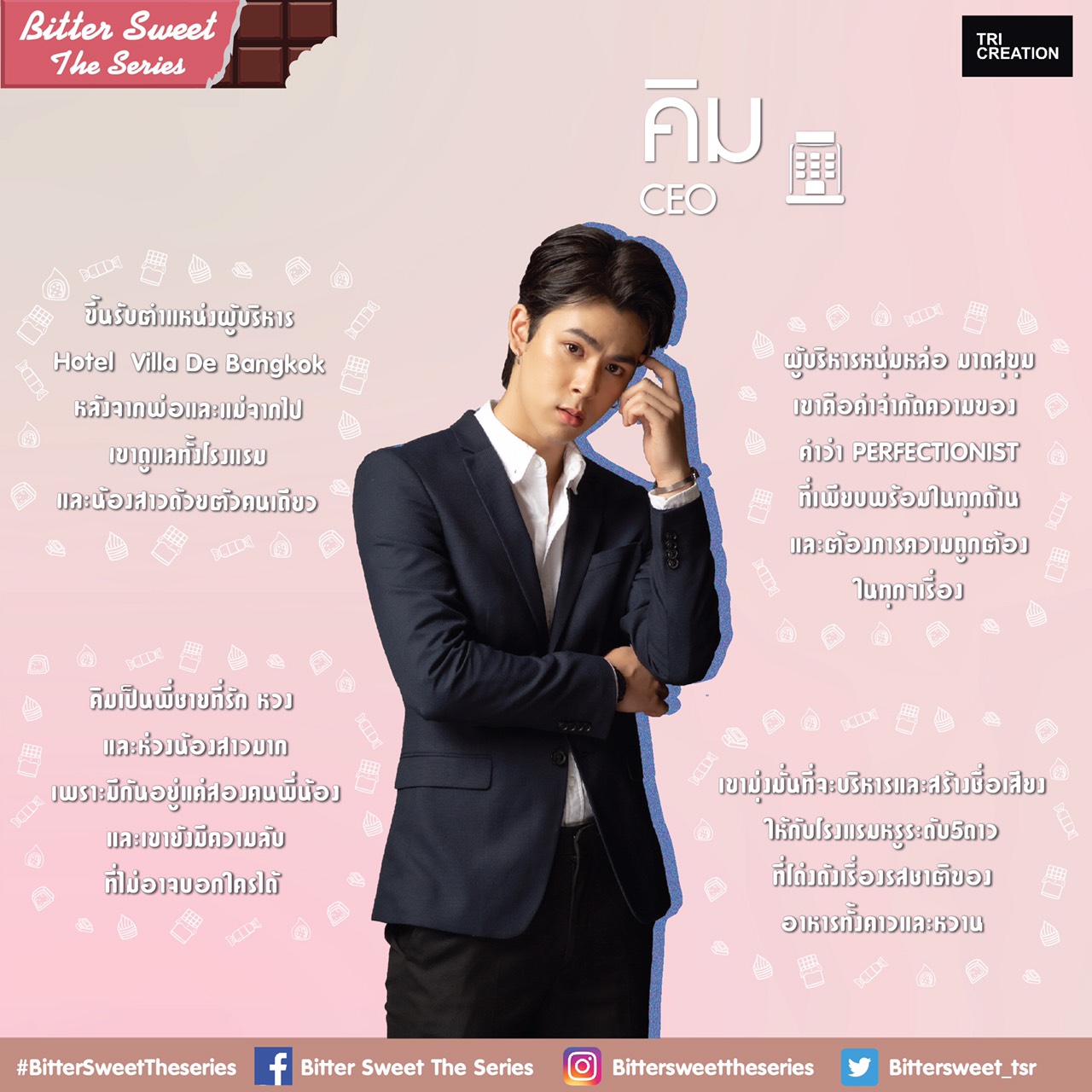 “จิม” CEO หนุ่ม หล่อ มาดสุขุม เขาคือคำจำกัดความของ คำว่า PERFECTIONIST ที่เพียบพร้อมในทุกด้าน และต้องการความถูกต้องในทุกๆเรื่อง เขาขึ้นรับตำแหน่งผู้บริหาร Hotel Villa De Bangkok หลังจากพ่อและแม่จากไป เขาดูแลทั้งโรงแรม และน้องสาวด้วยตัวคนเดียว นอกจากนอกจากนี้ คิมยังเป็นพี่ชายที่รัก หวง และ ห่วงน้องสาวของมาก เพราะมีกันอยู่แค่สองคนพี่น้อง แต่ใครจะรู้ว่าผู้บริหารหนุ่มหล่อนั้นยังมีความลับที่ไม่อาจบอกใครได้ คิมมุ่งมั่นที่จะบริหารและสร้างชื่อเสียงให้กับโรงแรมหรูระดับ5ดาวที่โด่งดังเรื่องรสชาติอาหารคาวและหวานอย่างสุดความสามารถ รับบทโดย “คูเปอร์-ภัทรพสิษฐ์”
