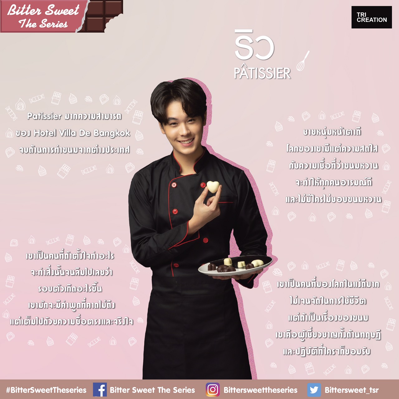 “ริว” pâtissier คนดัง มากความสามารถ ของ Hotel Villa De Bangkok เรียนจบด้านขนมหวานจากต่างประเทศ เขาเป็นหนุ่มน้อยหน้าตาดี โลกของริวมีแต่ความสดใส กับความเชื่อที่ว่าขนมหวานจะทำให้ทุกคนอารมณ์ดี และไม่มีใครที่ไม่ชอบขนมหวาน ริวเป็นคนที่ถ้าตั้งใจทำอะไร จะทำสิ่งนั้นจนลืมไปเลยว่ารอบตัวเกิดอะไรขึ้น เขามักจะมีคำพูดที่คาดไม่ถึงแต่เต็มไปด้วยความซื่อตรงและจริงใจ ริวเป็นคนที่มองโลกในแง่ดีมาก ไม่เจนจัดในการใช้ชีวิต แต่ถ้าเป็นเรื่องของขนม เขาคือผู้เชี่ยวชาญทั้งด้านทฤษฏีและปฎิบัติที่ใครๆก็ยอมรับ รีบบทโดย “ปอย-กฤษณพงศ์”