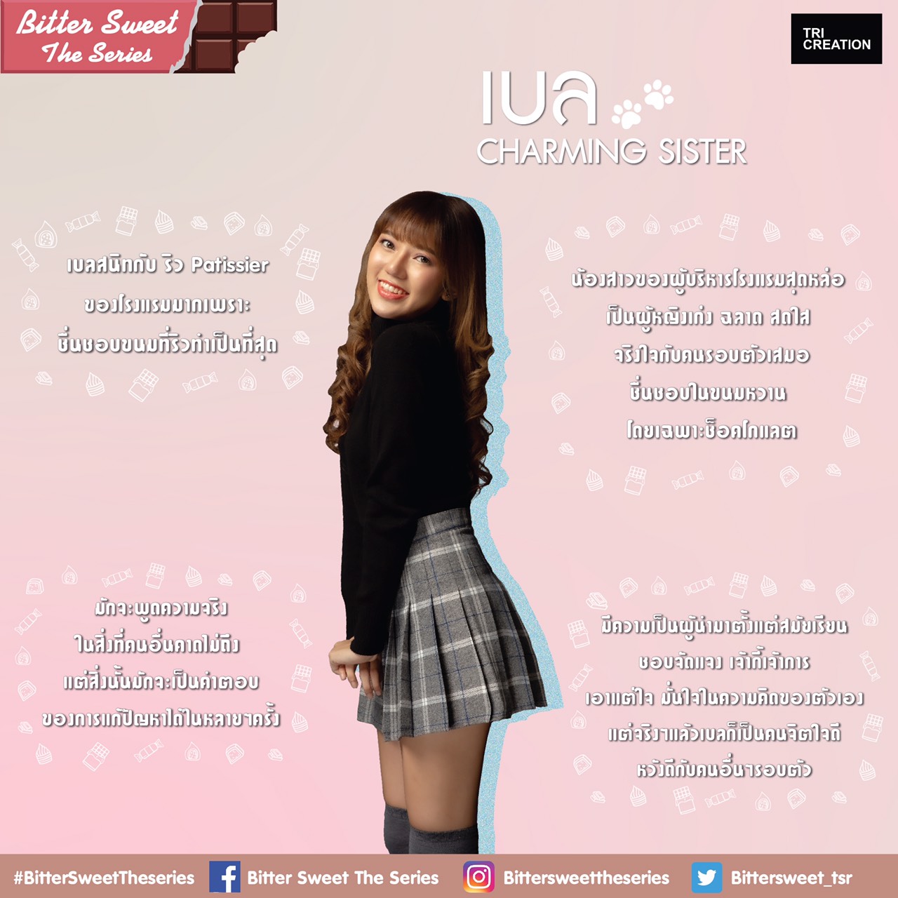 และสาวน้อยหนึ่งเดียวอย่าง “เบล” น้องสาวแสนสวยของผู้บริหารหนุ่มหล่อแห่ง โรงแรม Hotel villa De Bangkok เธอเป็นผู้หญิงเก่ง ฉลาด สดใส จริงใจกับคนรอบข้างเสมอ เบลชื่นชอบขนมหวานเป็นทีสุด โดยเฉพาะช็อคโกแลตทำให้เบลสนิทกับ patissier คนดังของโรงแรม เบลมีความเป็นผู้นำมาตั้งแต่สมัยเรียน ชอบจัดแจง เจ้ากี้เจ้าการ เอาแต่ใจ มั่นใจในความคิดของตัวเอง แต่จริงๆแล้วเบลก็เป็นคนจิตใจดีมีแต่ความหวังดีกับทุกคนเสมอ รับบทโดย “ไนน์ไนน์-ณัฏฐณิชา”