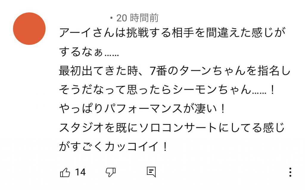 (ภาพซีโมน3 และภาพซีโมน–อาย) “อายจัง” น่าจะเลือกท้าผิดคนไปหน่อย พอ “อายจัง” เดินออกมานึกว่าจะท้า “ตาล” ซะอีก แต่กลายเป็น “ซีโมน” ซะงั้น เพอร์ฟอร์ม “ซีโมน” คือมันสุดยอดมาก เหมือนทำให้ทั้งสตูกลายเป็นคอนเสิร์ตของตัวเองเลย เท่มาก