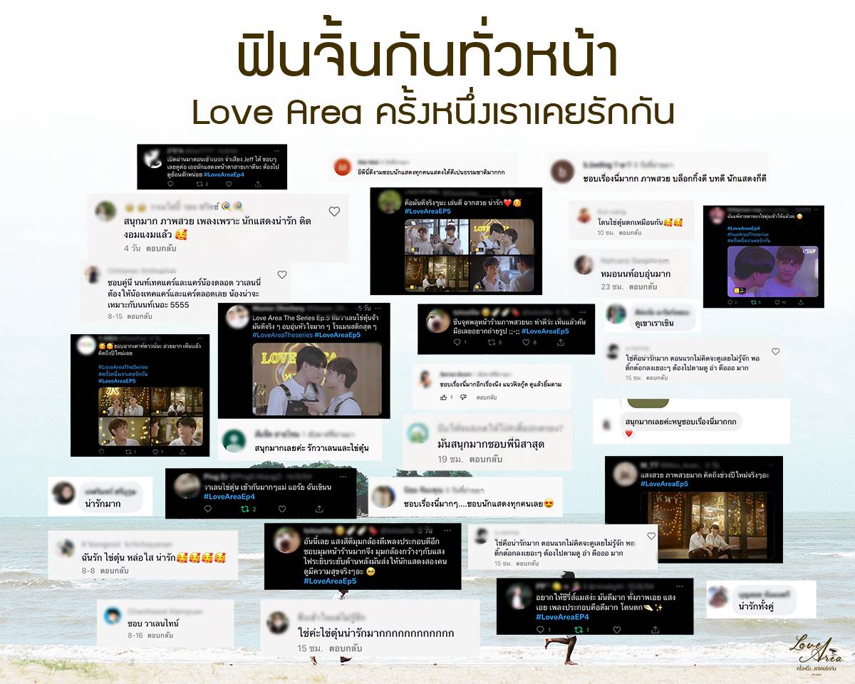 ปิดฉาก Part 1 ไปแบบฟินๆสำหรับ ซีรีส์วายกระแสแรง Love Area…ครั้งหนึ่งเราเคยรักกัน ของผู้จัด ดอร์เช่ ธีรเดช พวงศิริ  ผลิตโดย บริษัท IAE อิมเมจ อาร์ตทิส เอ็นเทอร์เทนเมนท์ จำกัด  ผลงานการกำกับของ ณัฐพัชร์ สุขวงษ์ศิลป์ ออกอากาศแค่ตอนแรกก็แจ้งเกิด พระเอก นายเอก หน้าใหม่ 2 คู่ทันที นั่นก็คือ กันกัน กัญจน์ เตียวสุวรรณ และ ภัค ชวิศพงศ์ พูสมจิตสกุล คู่จิ้นหมายเลข2 โอมเพี้ยง  ณภัทร  อุตสาหะ ,โต้ด  เตชิต  ปัญญนราพร รวมถึง แพน  นรวิชญ์ บวรสันติสุทธิ์ และนักแสดงสมทบที่ฝีมือไม่ธรรมดา ต่างโกยยอดไลท์ ยอดติดตามในช่องทางโซเชียลมีเดียส์เพิ่มขึ้น ไม่ว่าจะเป็น instagram Facebook twitter เพจซีรีส์ดังทั้งไทยและต่างประเทศต่างพูดถึงในวงกว้าง จัดไป REACTION กันสนุก จบที่ EP 6 จึงยังไม่จุใจ แฟนคลับเรียกร้อง Love Area Part 2 ต่อทันที งานนี้ ผู้จัดฯ ดอร์เช่ ธีรเดช ไม่ทำให้ผิดหวัง เตรียมลุยถ่ายทำต่อแน่นอน ซึ่ง ดอร์เช่ เผยว่า “กระแสดีขนาดนี้ ไม่มีภาคต่อคงไม่ได้แล้วล่ะ คาดว่าหลังสถานการณ์โควิด-19 คลี่คลาย ทีมถ่ายทำเราจะลุยกันต่ออย่างแน่นอน มั่นใจได้เลยว่าเข้มข้นสุดฟิน พิถีพิถันจัดเต็มเพื่อแฟนซีรีส์ Love Area  โดยเฉพาะ ดีใจมากกับกระแสตอบรับที่ผ่านเข้ามาจากทุกช่องทาง แค่เห็นก็หายเหนื่อยแล้ว ต้องขอขอบคุณแฟนซีรีส์ แฟนคลับ ทีมงานและนักแสดงทุกคนที่ทุ่มเทการแสดงอย่างเต็มที่ แม้จะเป็นนักแสดงหน้าใหม่แต่ทำให้เราเชื่อใจเขาได้นั้นไม่ธรรมดาหรอก ส่วน Part 2 จะเข้มข้นขนาดไหน ติดตามกันได้ เร็วๆนี้ทางช่อง 9 MCOT HD หมายเลข 30 และ AISPLAY”
