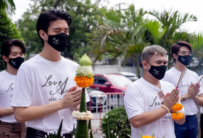 สำหรับบรรยากาศ ณ ลานบวงสรวง หน้าศาลท้าวมหาพรหม อาคารปฏิบัติการ ช่อง 9 MCOT HD วันนี้คึกคักเป็นพิเศษ นักแสดงมากันครบทีม นำโดย กัญจน์ เตียวสุวรรณ (รับบท วาเลนไทน์) ชวิศพงศ์ พูสมจิตสกุล (รับบท ไข่ตุ๋น) ร่วมด้วย โอมเพี้ยง ณภัทร อุตสาหะ ,โต้ด เตชิต ปัญญนราพร ,แพน นรวิชญ์ บวรสันติสุทธิ์ ,โจเซฟ สิรภัทร บุญรอด ,เอตั้น ธนากร เตชะวิชาญ ,นำโชค ธานน อภิธนวงศ์ ,ฟ้า วิศัลย์ศยา ภคศุภกุล ,ซัน ปุณกฤษ กังวโรวงศ์ ,เก้า ภูมภัสส์ ดลพุทธิทรัพย์ รวมถึงไอดอลสาว แอ๊นท์ วรินดา เนินเพิ่มพิสุทธิ์ และ ซอนญา ชิษณุชา ดอนเนลลี่ แห่งวง SWEAT16 ก็มีโอกาสโชว์ฝีมือการแสดงในซีรีส์วายเรื่องแรกในชีวิต นอกจากนี้ยังมีหนุ่มหล่อเสียงเท่ เจฟ วรกมล ซาเตอร์ เจ้าของเสียงร้องเพลงประกอบซีรีส์เรื่องนี้ที่แค่ฟังท่อนแรกก็เคลิ้มแล้ว มาร่วมงานด้วยเช่นกัน ทุกคนสวมใส่แมส Love Area เว้นระยะห่างตามกฎข้อบังคับในช่วงสถานการณ์การแพร่ระบาดของเชื้อไวรัส โควิด-19 นี้อย่างเคร่งครัด