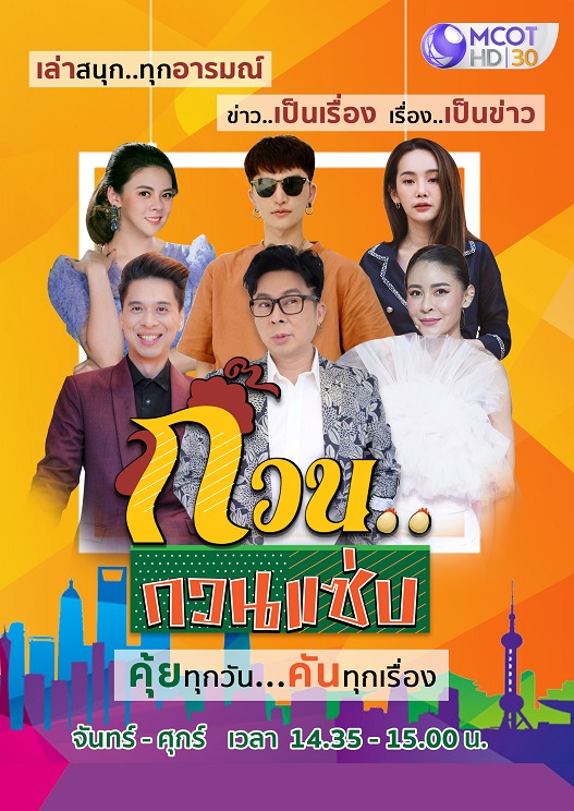 พบกับรายการใหม่ล่าสุด รับผังใหม่เดือนกันยายน ของช่อง 9 MCOT HD หมายเลข 30 กับรายการ “ก๊วน…กวนแซ่บ” วาไรตี้ข่าวแซ่บ คุ้ยทุกวัน คันทุกเรื่อง เล่าสนุก ทุกอารมณ์ ข่าวเป็นเรื่อง เรื่องเป็นข่าว กับ พิธีกรสุดแซ่บ ที่จะสลับหมุนเวียนมาทำหน้าที่ดำเนินรายการ นำทีมโดย ไก่-สมพล ปิยะพงศ์สิริ, ปุ้มปุ้ย-พรรณทิพา อรุณวัฒนชัย, ช่า-ธีร์ธวิต เศรฐไชย, ใบเฟิร์น-พัสกร พลบูรณ์, เป็กกี้-ดรุณี สุทธิพิทักษ์ และ เอกกี้-เอกชัย เอื้อสังคมเศรษฐ ยกก๊วนมากวนกันสดๆ 5 วันรวด ทุกวันจันทร์-ศุกร์ เวลา 14.35 น. พบกับข่าวเด็ดทั่วไทย ข่าวกระแสทั่วโลก รวมถึงไม่พลาดเรื่องราวจากทุกกระแสโซเชียล ที่มีผลกระทบต่อสังคม พลาดไม่ได้กับอรรถรสใหม่ในการชมข่าว ปิดท้ายด้วยการเสริมทัพ เสริมพลังชีวิต กับหลากหลายสิ่งเด็ดในรายการ