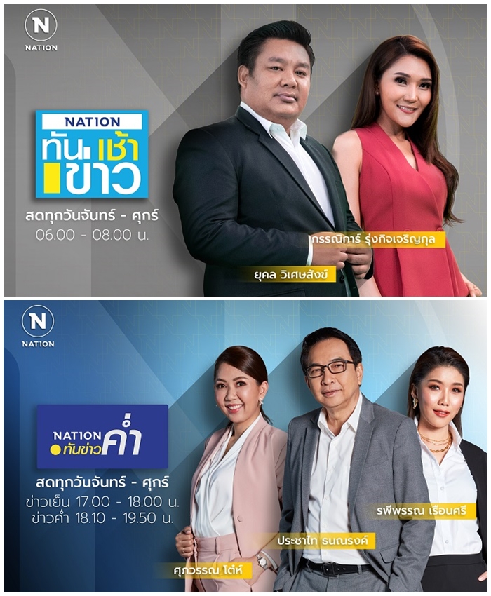 เนชั่นทันข่าวเย็น’ สดทุกวันจันทร์-ศุกร์ เวลา 17:00-18:00 น. และ ‘เนชั่นทันข่าวค่ำ’ สดทุกวันจันทร์-ศุกร์ เวลา 18:10-19:50 น. อัพเดทประเด็นข่าวใหญ่ ข่าวที่น่าสนใจในรอบวัน เท่าทันทุกสถานการณ์ทั่วประเทศ เล่าข่าวแบบมืออาชีพ เข้าใจง่าย อย่างมีสีสันตามสไตล์ของ ประชาไท ธนณรงค์ ร่วมด้วย ศุภวรรณ โต๋ห์ และ รพีพรรณ เรือนศรี