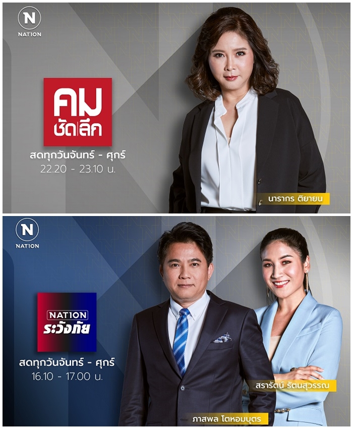 เนชั่นระวังภัย : สดทุกวันจันทร์ – ศุกร์ เวลา 16:00-17:00 น. “เดือดเนื้อ ร้อนใจ บอก เนชั่นระวังภัย” รายการสดอันแน่นด้วยเนื้อหาที่คุณต้องรู้ เตือนไว้ก่อนภัยมาถึง พร้อมสกู๊ปพิเศษและลงพื้นที่จริงรายงานสด กลโกงทุกรูปและอาชญากรรมทั่วประเทศ