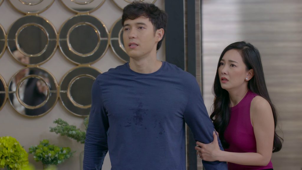ในเรื่องเป็นตอนที่ “คุณจันทร์ทรงกลด” (บุ๋ม-ปนัดดา) ทำตามแผนของ “พิระดา” (สา-มาริสา) โดยคุณจันทร์โทรศัพท์ไปบอก “เดวิด” ว่า “สมคิด” (กบ-ทรงสิทธิ์) เตรียมพาตัววิไลมาเปิดเผยความจริงของเดวิด ที่รายการของทางสถานีโทรทัศน์ SKTV เท่านั้นยังไม่พอคุณจันทร์ยังเอาคลิปหลักฐานที่สมคิดสั่งให้ “พัฒนะ” (ไซม่อน เครสเลอร์) ตัดคอนเนคชั่นที่มีกับเดวิดออกให้หมด ทำให้เดวิดโมโหอย่างมาก และยังโกรธที่โดน “ตรีศิลป์” เปิดเผยความลับของตัวเอง ทำให้เดวิดบุกไปบ้านของ “ภากร” ซึ่งตอนนั้นมี “ตรีศิลป์” และ “อรณิชา” (นุ่น -วรนุช) อยู่ด้วย เดวิดเอาปืนไปขู่หวังจะฆ่าภากร แต่เขากลับต้องตกใจ เมื่อเห็นภากรมี 2 คน จากนั้นทั้งภากรและตรีศิลป์ก็รุมแย่งปืนจากเดวิด ทำให้ทุกคนตกจากระเบียง โชคดีที่ทั้งภากรและตรีศิลป์เกาะขอบระเบียงกันไว้ได้ ทำให้เดวิดพลัดตกจนได้รับบาดเจ็บ และถูกตำรวจจับได้ไปในที่สุด