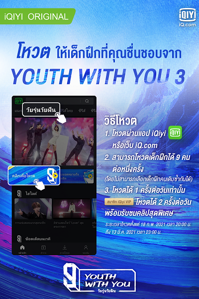 จากที่ Youth With You 3 (วัยรุ่นวัยฝัน 3) รายการวาไรตี้ค้นหาไอดอลหน้าใหม่ที่โด่งดังที่สุดของจีน ได้เริ่มออกอากาศทาง iQiyi (อ้ายฉีอี้) แพลตฟอร์มวิดีโอออนไลน์ชั้นนำจากประเทศจีนที่มียอดการเติบโตสูงสุดอันดับ 1 ในประเทศไทยและเอเชียตะวันออกเฉียงใต้ เมื่อ 17 ก.พ. ที่ผ่านมา ความนิยมยิ่งพุ่งทะยานขึ้นต่อเนื่องจากกระแสตอบรับเด็กฝึกชายรุ่นนี้ที่ความสามารถจัด คาแรคเตอร์เด่นชัด อย่าง Produce Pandas ที่มีหุ่นพลัสไซส์เหมือนหมี และโชว์ของแต่ละคนที่สร้างความประทับใจให้ผู้ชมและเหล่าเมนเทอร์ต้องเอ่ยปากชมไปตาม ๆ กัน